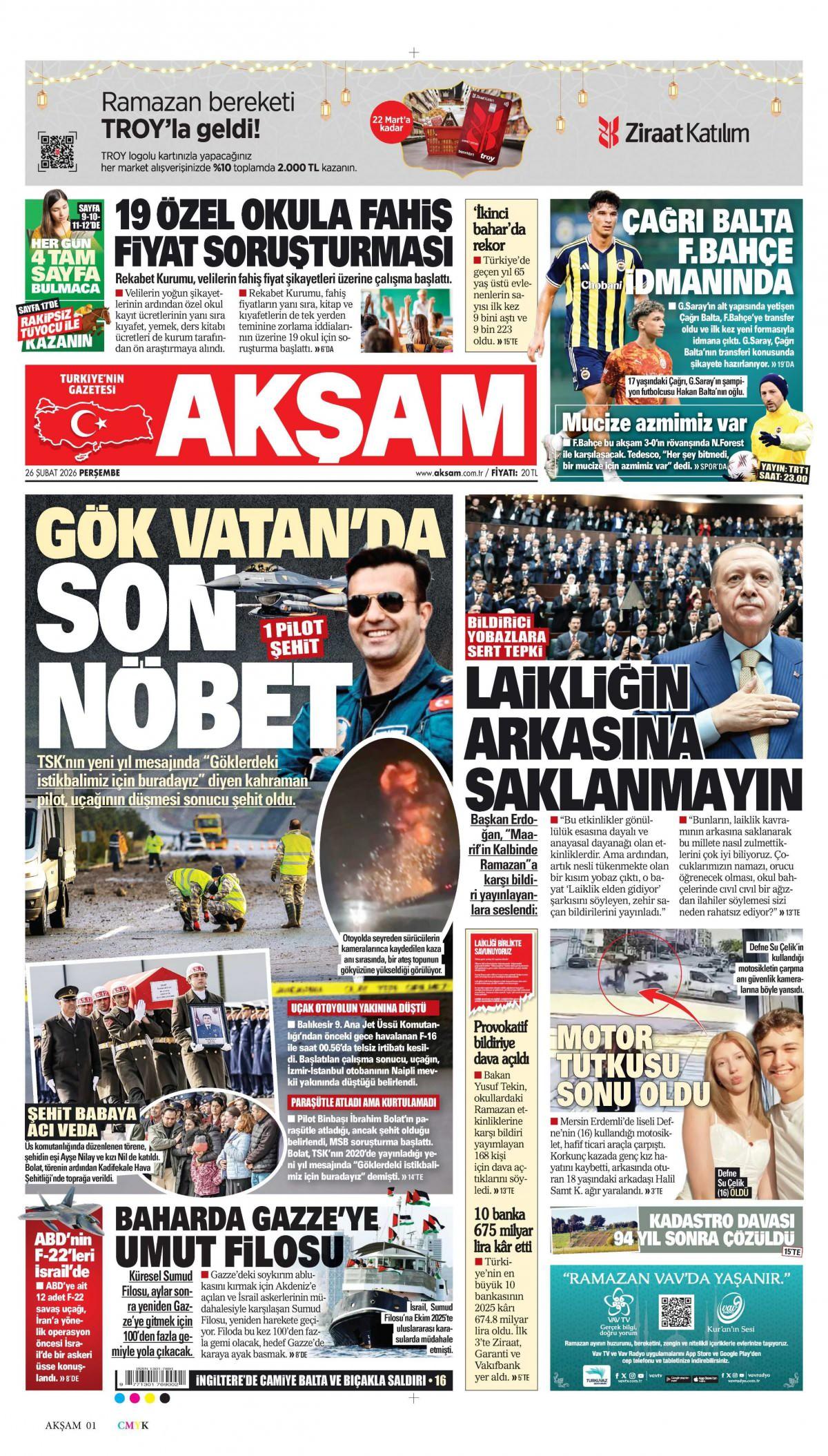 Akşam Gazetesi 27 Şubat 2026 Günü Manşeti