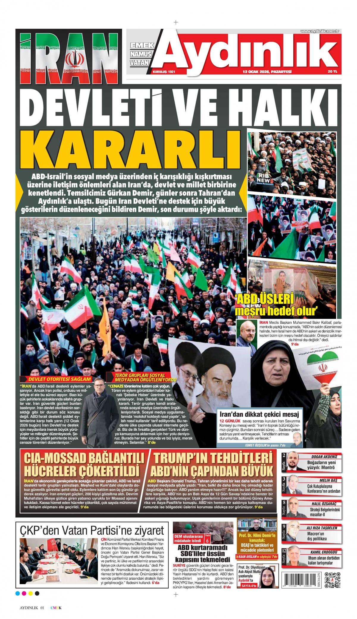 Aydınlık Gazetesi 12 Ocak 2026 Günü Manşeti