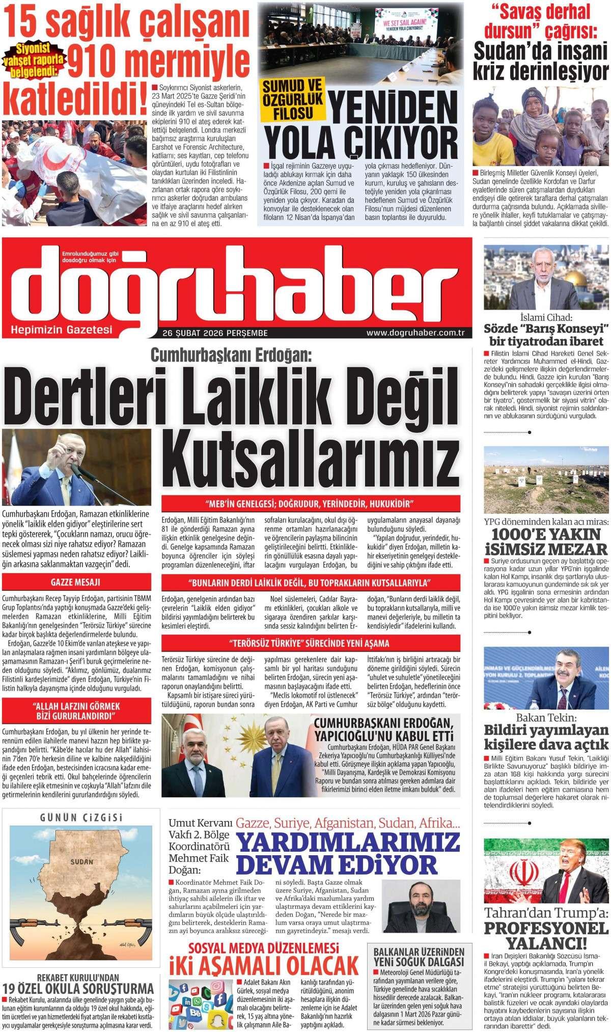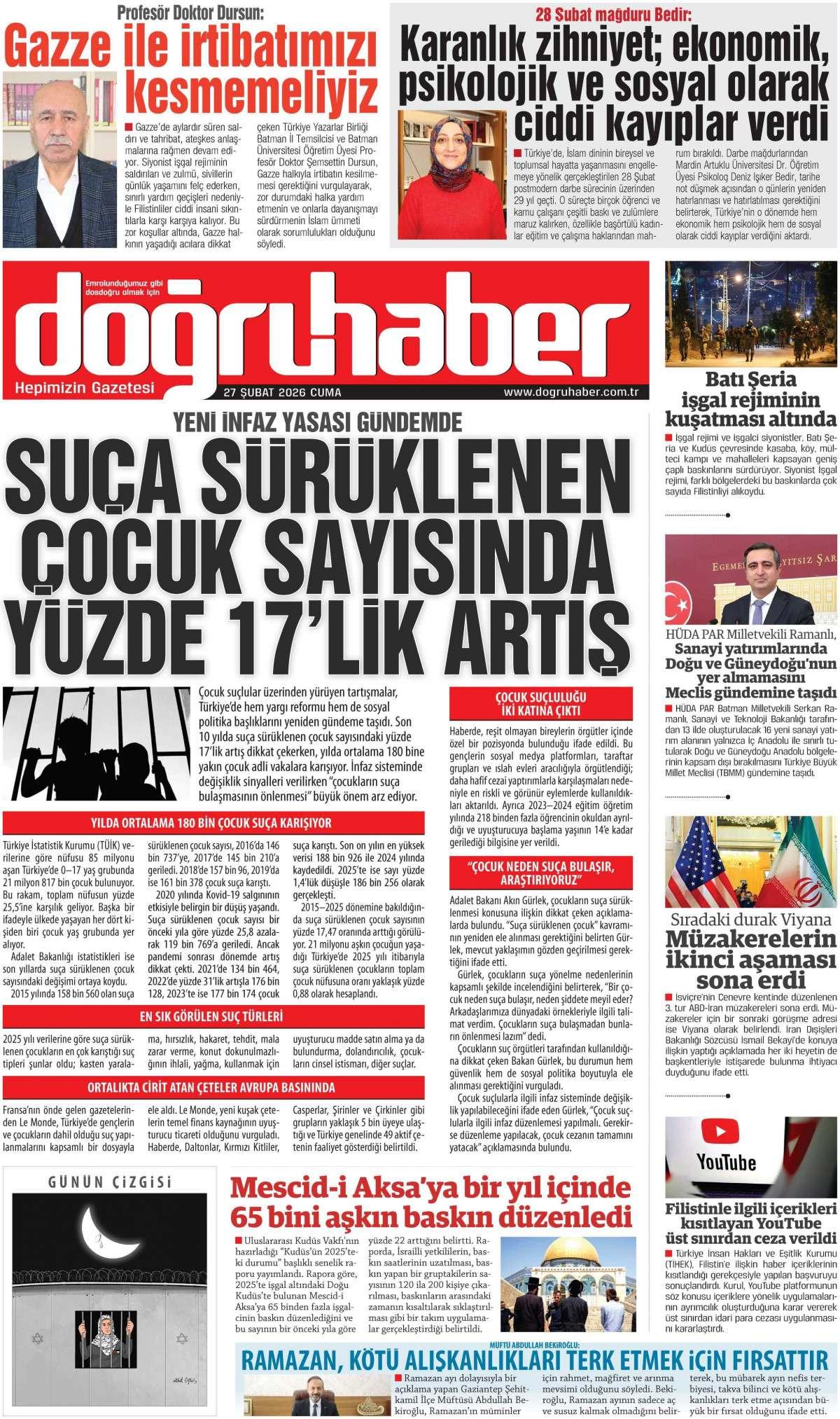Doğru Haber Gazetesi 27 Şubat 2026 Günü Manşeti