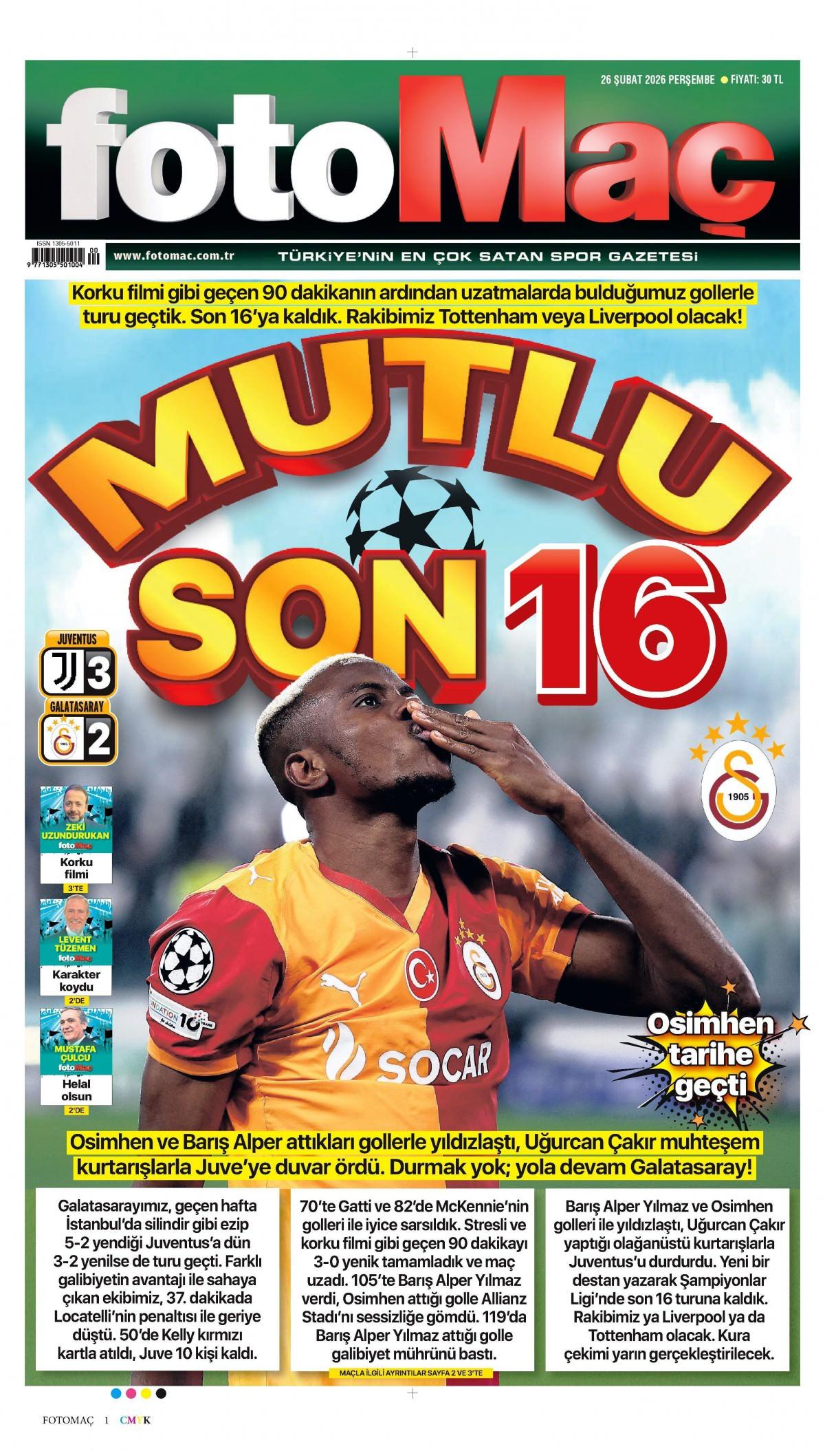 Fotomaç Gazetesi 27 Şubat 2026 Günü Manşeti