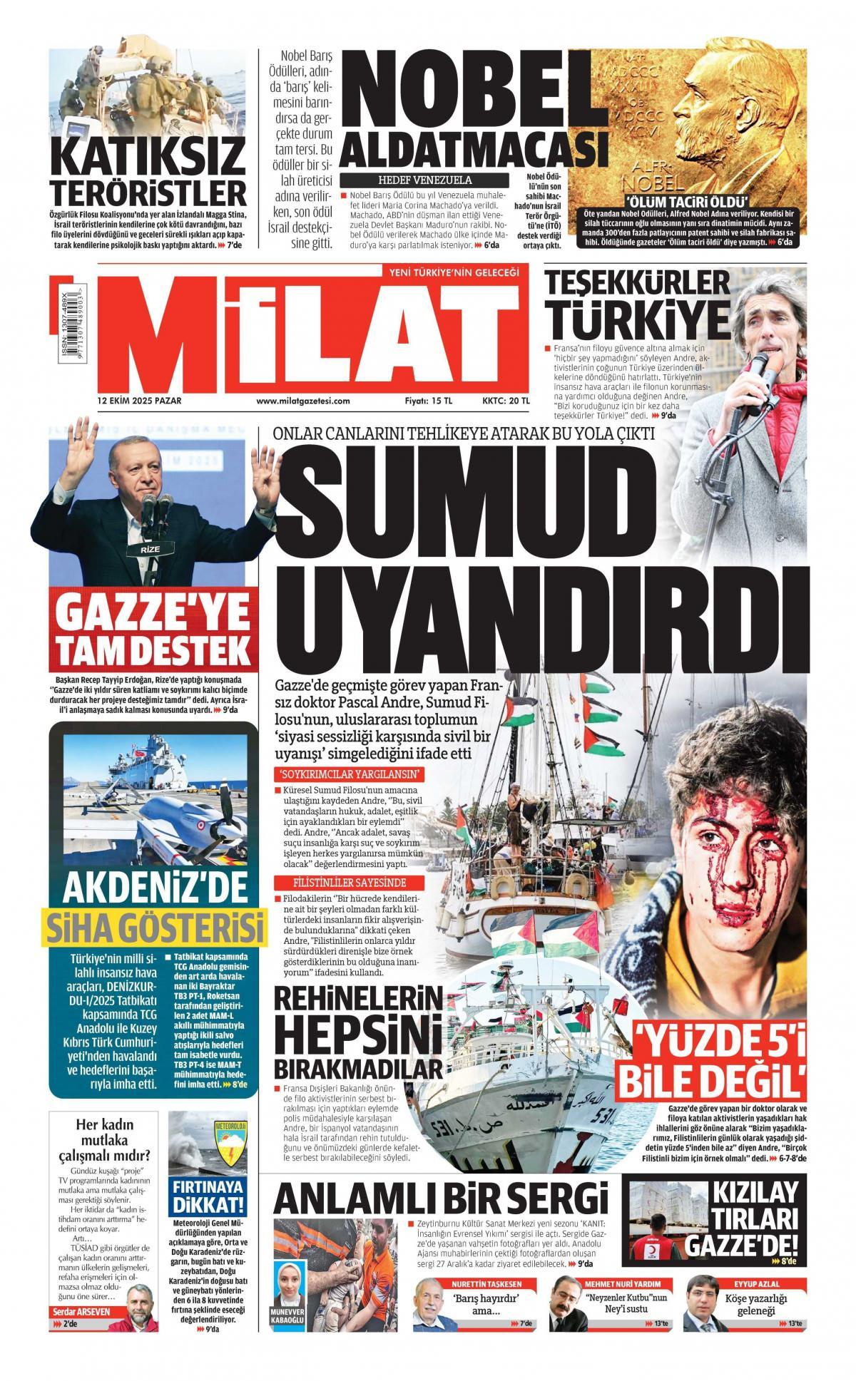 Milat Gazetesi 12 Ekim 2025 Günü Manşeti