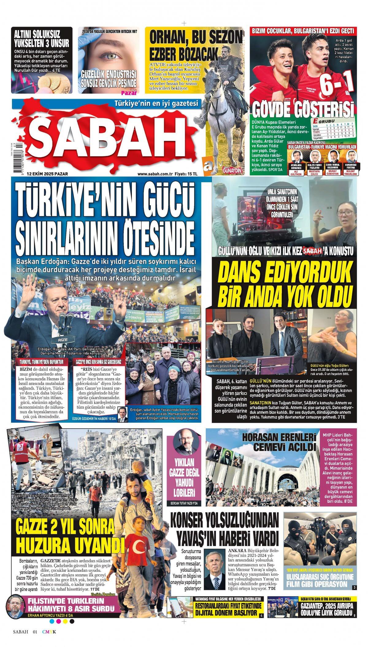 Sabah Gazetesi 12 Ekim 2025 Günü Manşeti