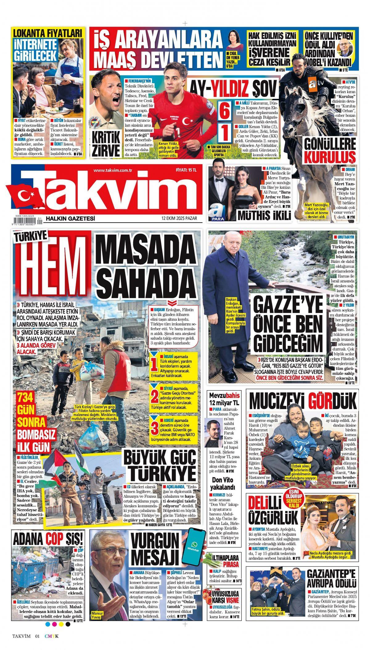 Takvim Gazetesi 12 Ekim 2025 Günü Manşeti