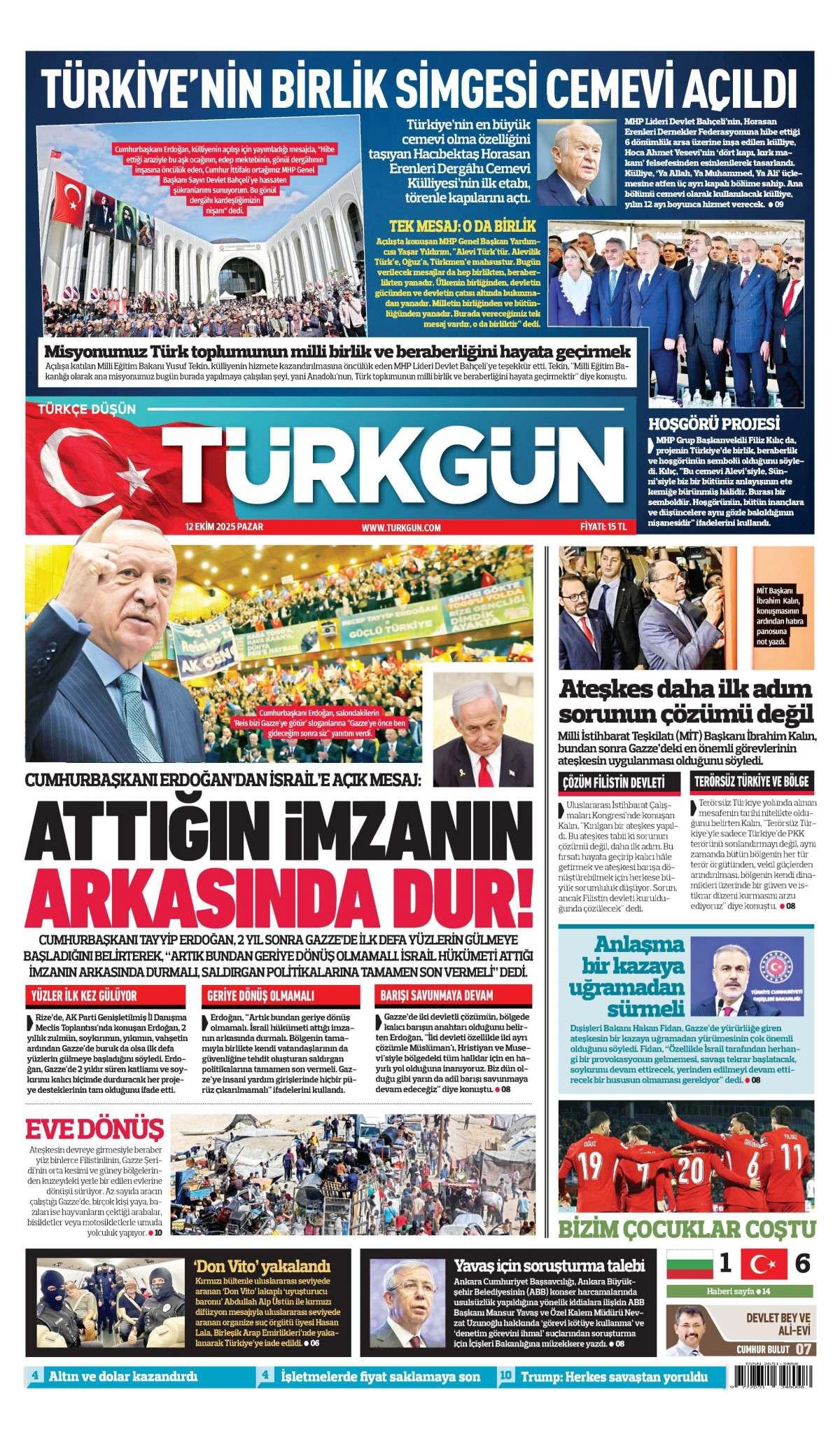 Türkgün Gazetesi 12 Ekim 2025 Günü Manşeti