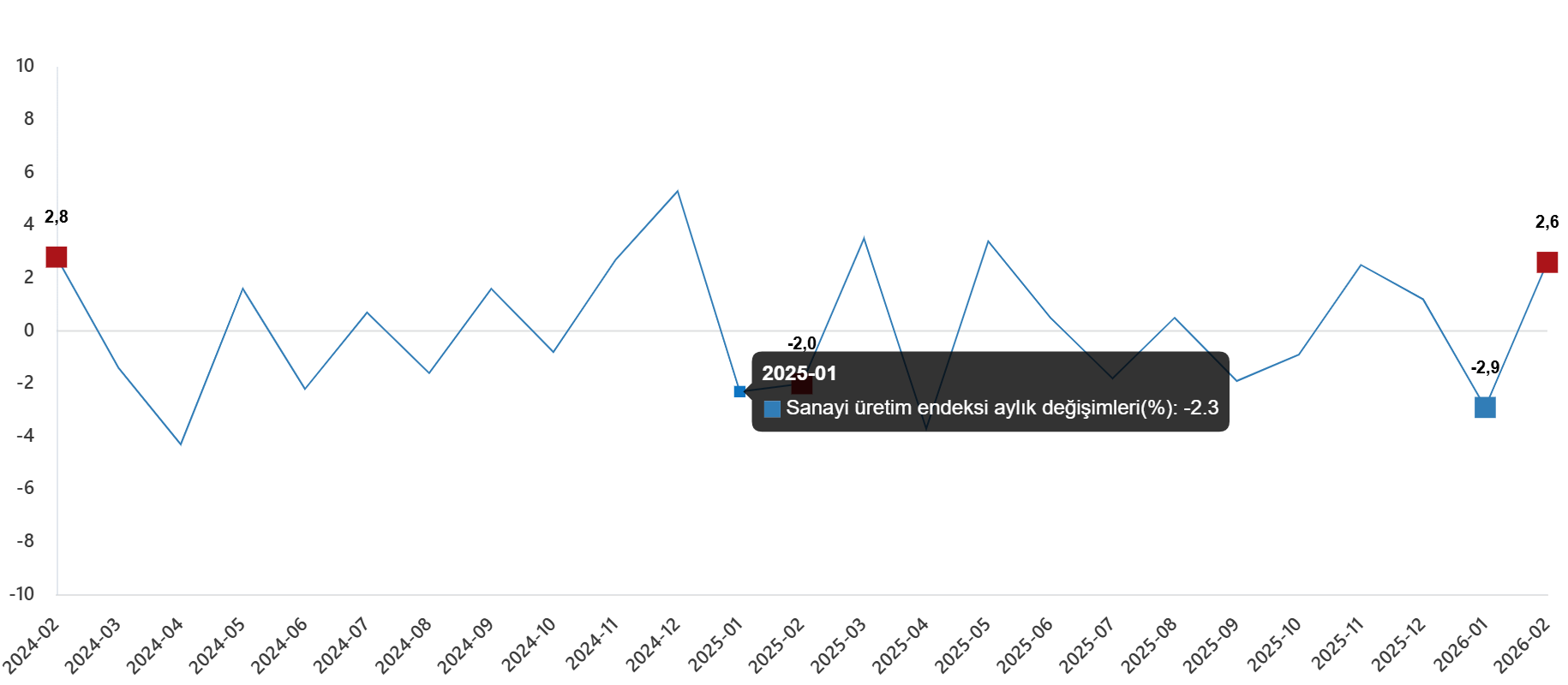 Sanayi üretim endeksi aylık değişimleri(%), Şubat 2026