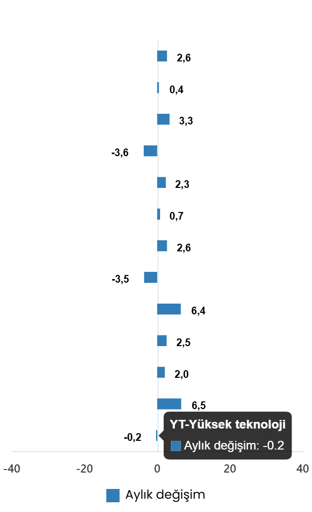 Sanayinin alt sektörleri incelendiğinde, 2026 yılı Şubat ayında madencilik ve taş ocakçılığı sektörü endeksi bir önceki aya göre %0,4 arttı, imalat sanayi sektörü endeksi %3,3 arttı ve elektrik, gaz, buhar ve iklimlendirme üretimi ve dağıtımı sektörü endeksi %3,6 azaldı.
